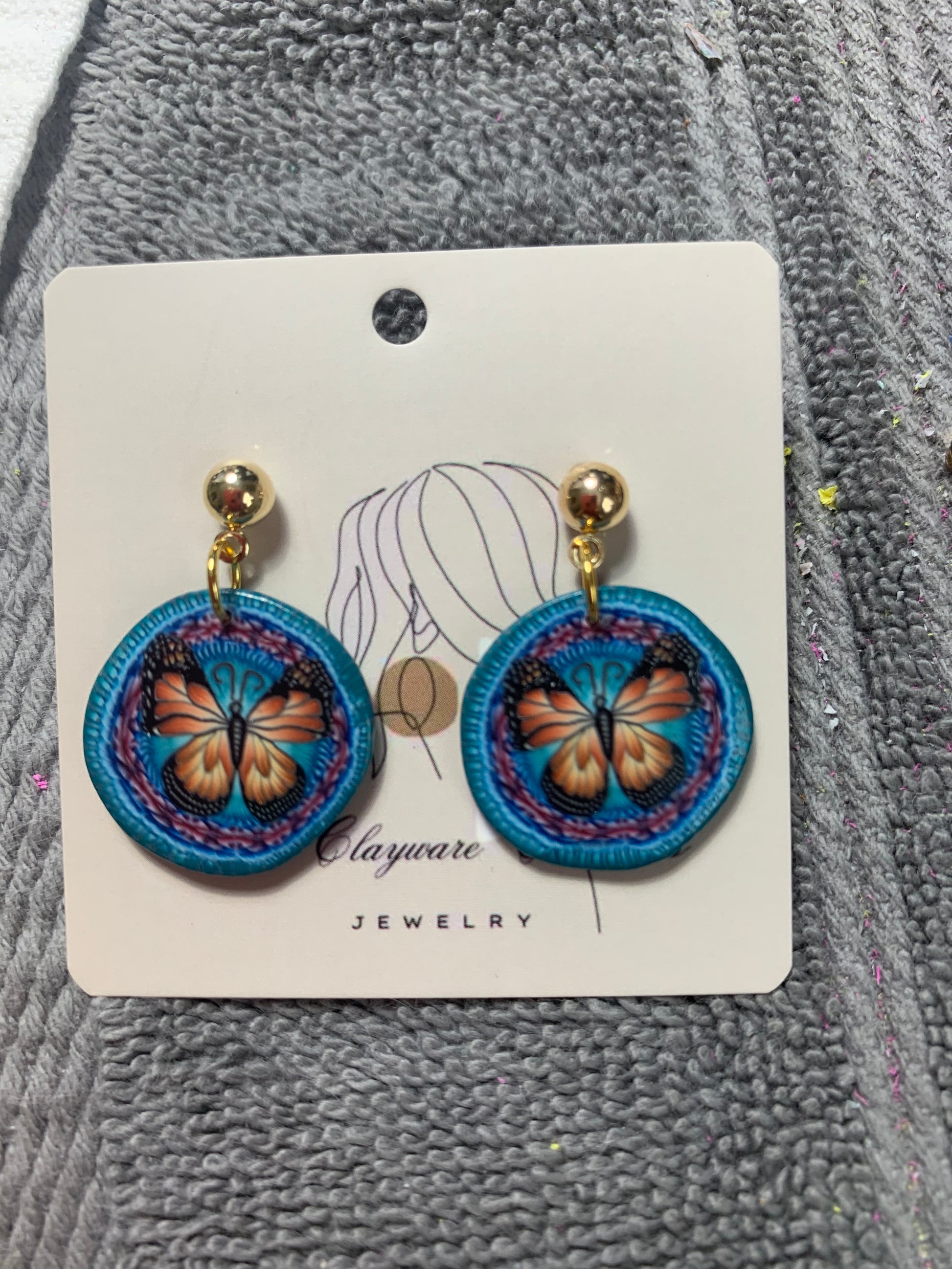 Butterfly circle polymer clay earrings