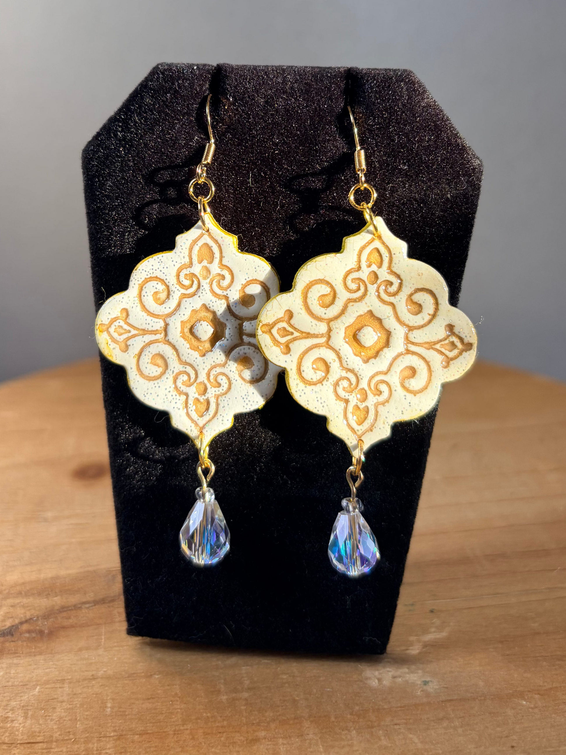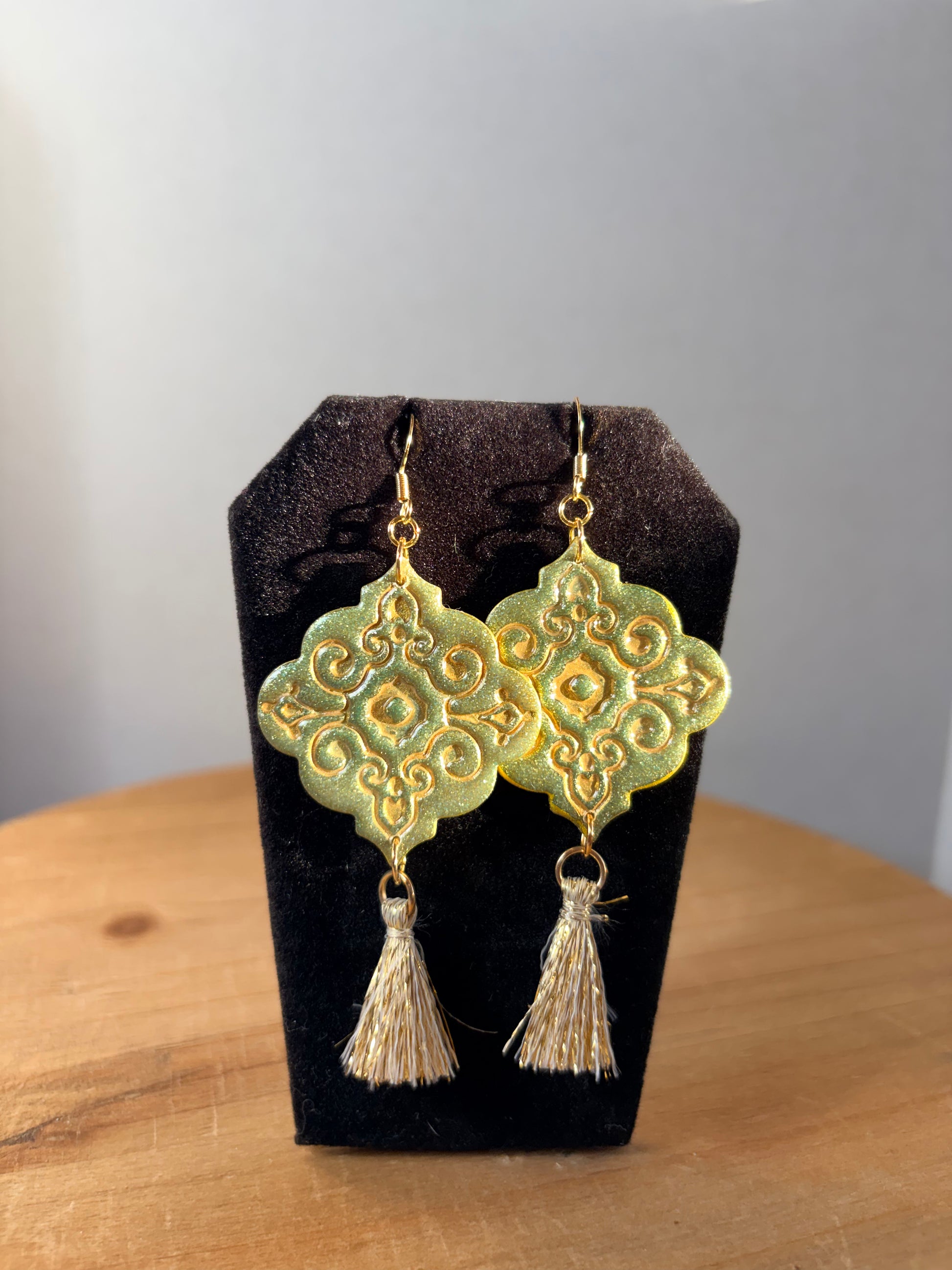 Ornament Glow Earrings — handcrafted polymer clay pieces that capture the beauty of holiday décor. Each pair sparkles in white, green, or red glitter, accented with 18k gold-plated hooks and finished with your choice of a crystal drop or gold tassel. Measuring 1¼ inches round, these earrings are lightweight yet full of festive shine — perfect for dressing up every holiday moment.